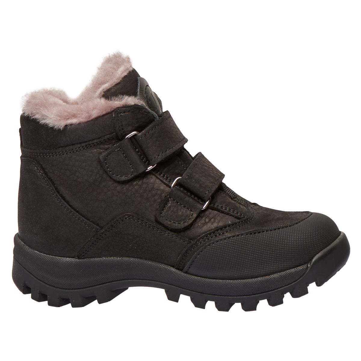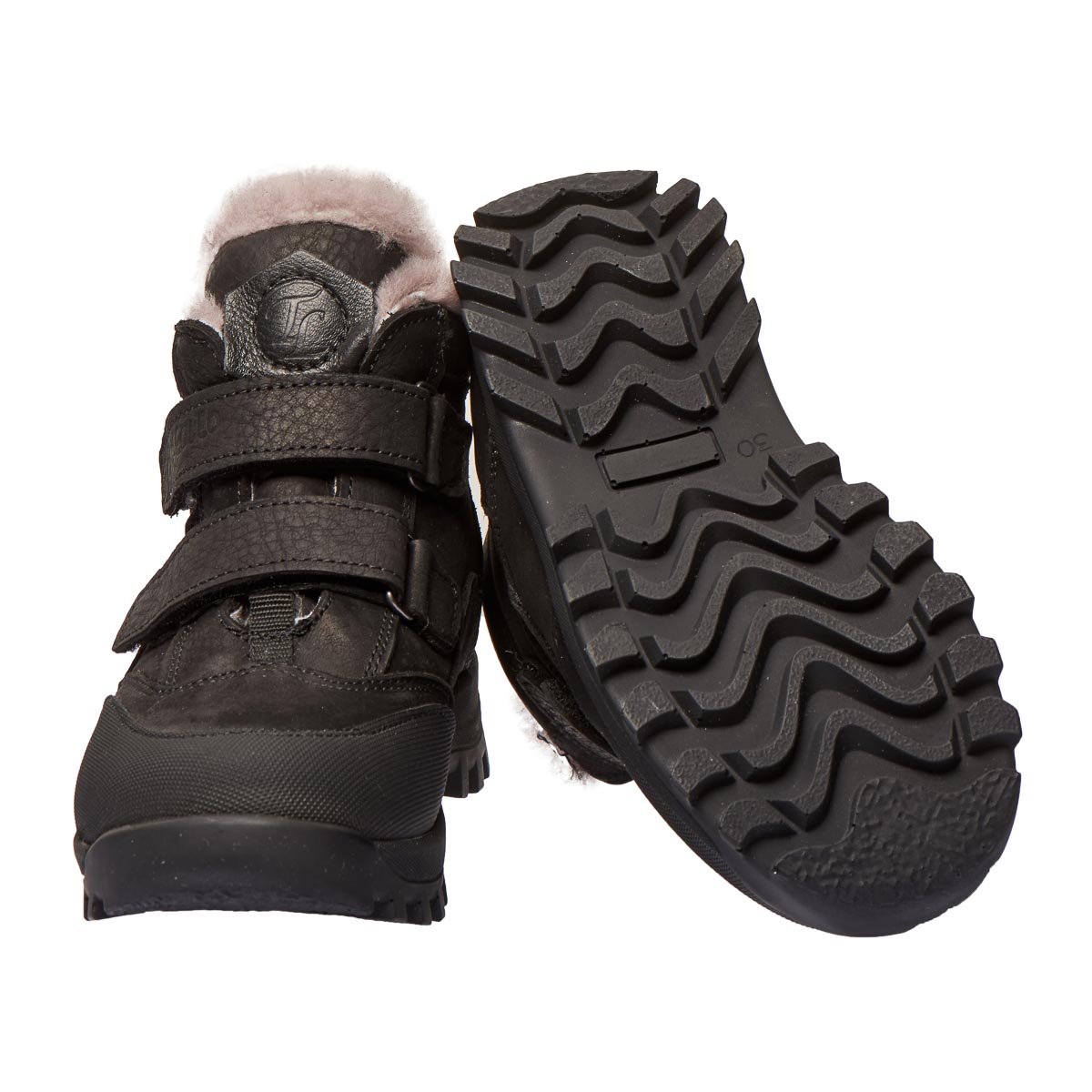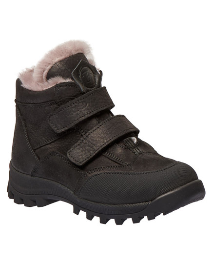 Спортивные зимние ботинки для мальчиков, выполненные из натурального черного нубука, обеспечивают отличное тепло благодаря натуральной цигейке внутри. Они оснащены жестким задником, и стелькой с анатомическим супинатором для правильного развития стопы. Липучки гарантируют быстрое и надежное закрепление. Высокое качество материалов делает эти ботинки безупречными.