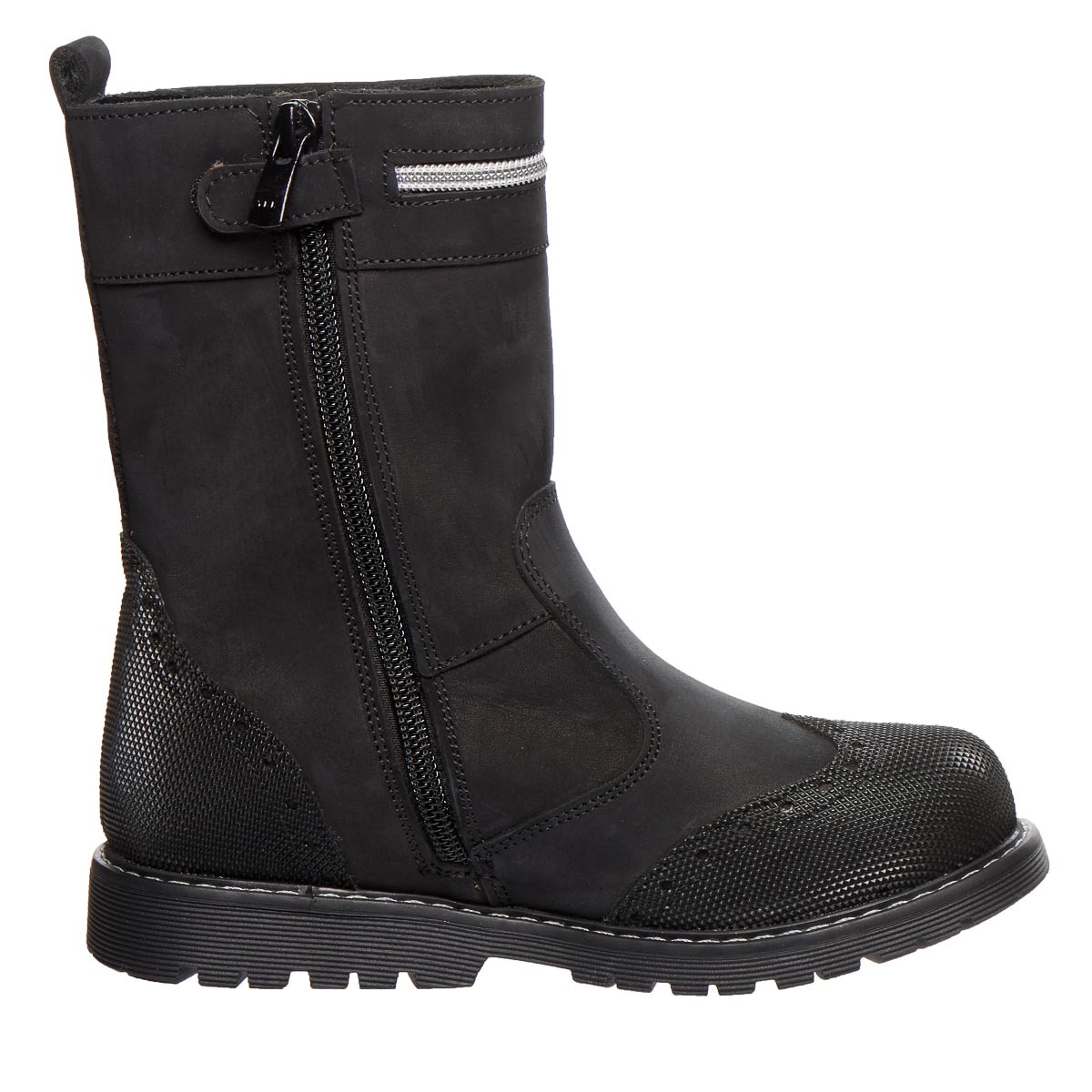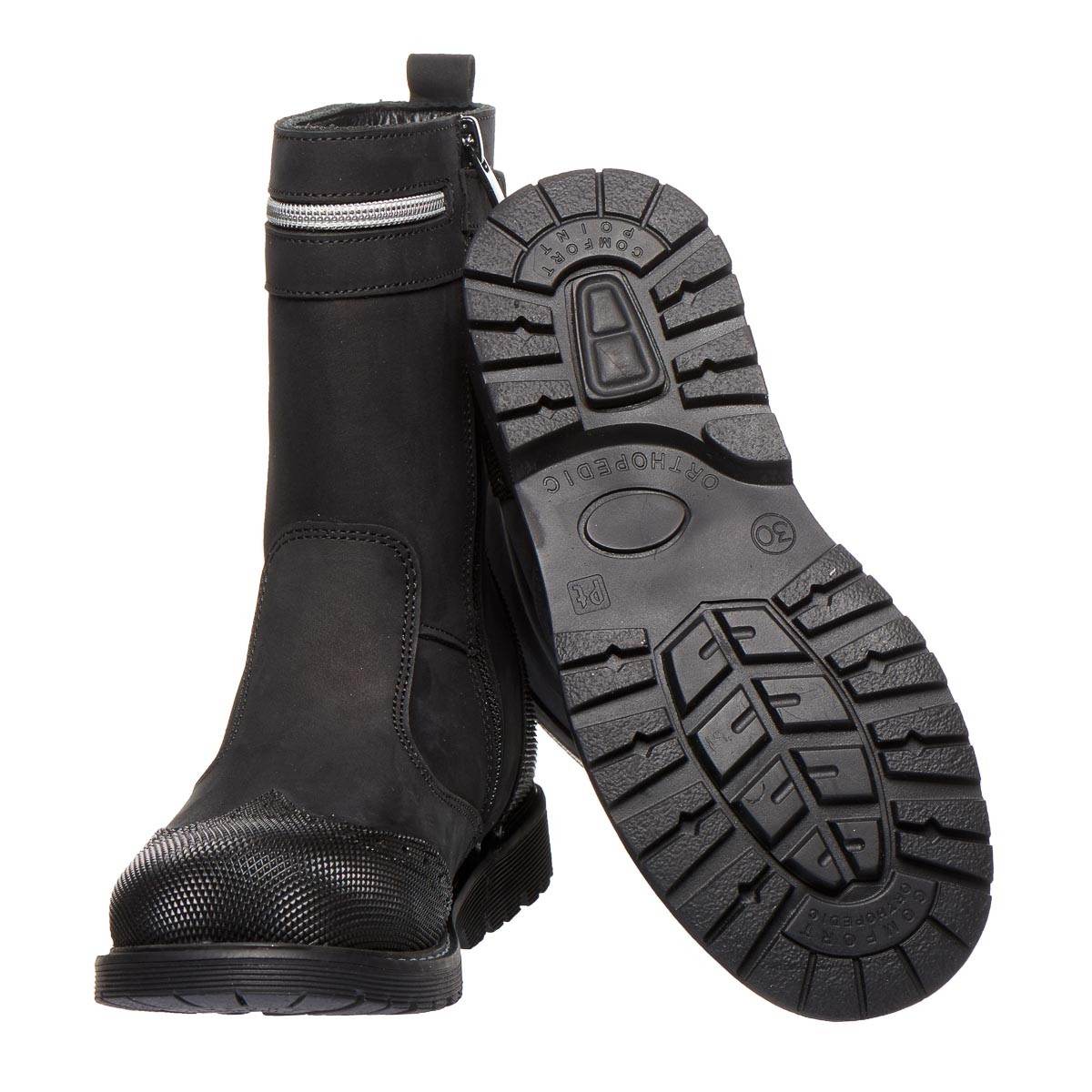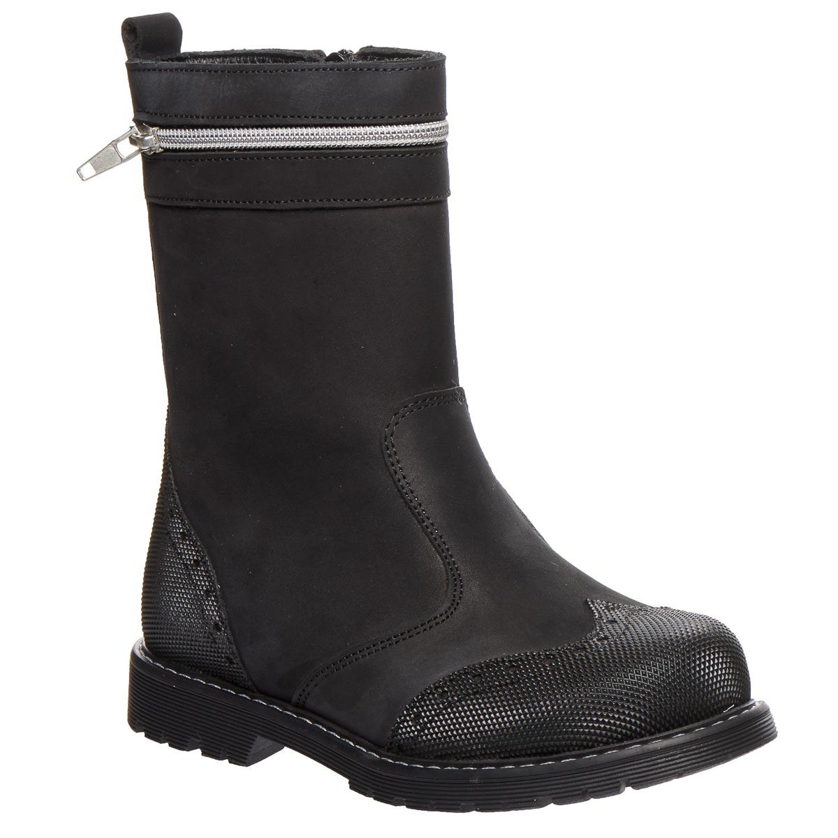 Откройте для себя зимнюю коллекцию сапог для девочек, которая сочетает элегантность и практичность. Эти черные сапоги изготовлены из натурального нубука, который не только придает стильный вид, но и обеспечивает длительный срок службы. Носовая часть и пятка обуви покрыты полиуретановым покрытием, что защищает от внешних воздействий и повышает их долговечность. Удобство надевания обеспечивает молния, а петля на задней части сапога облегчает процесс обувания. Внутренняя часть утеплена натуральным мехом. Сапоги имеют круглый, плотный носок, обеспечивающий достаточно пространства для пальцев, и прочную подошву, устойчивую к повреждениям, стельку с супинатором. Жесткая пятка добавляет дополнительную стабильность, удерживая ногу на месте. Эти сапоги станут идеальным выбором для прогулок в зимнее время.
