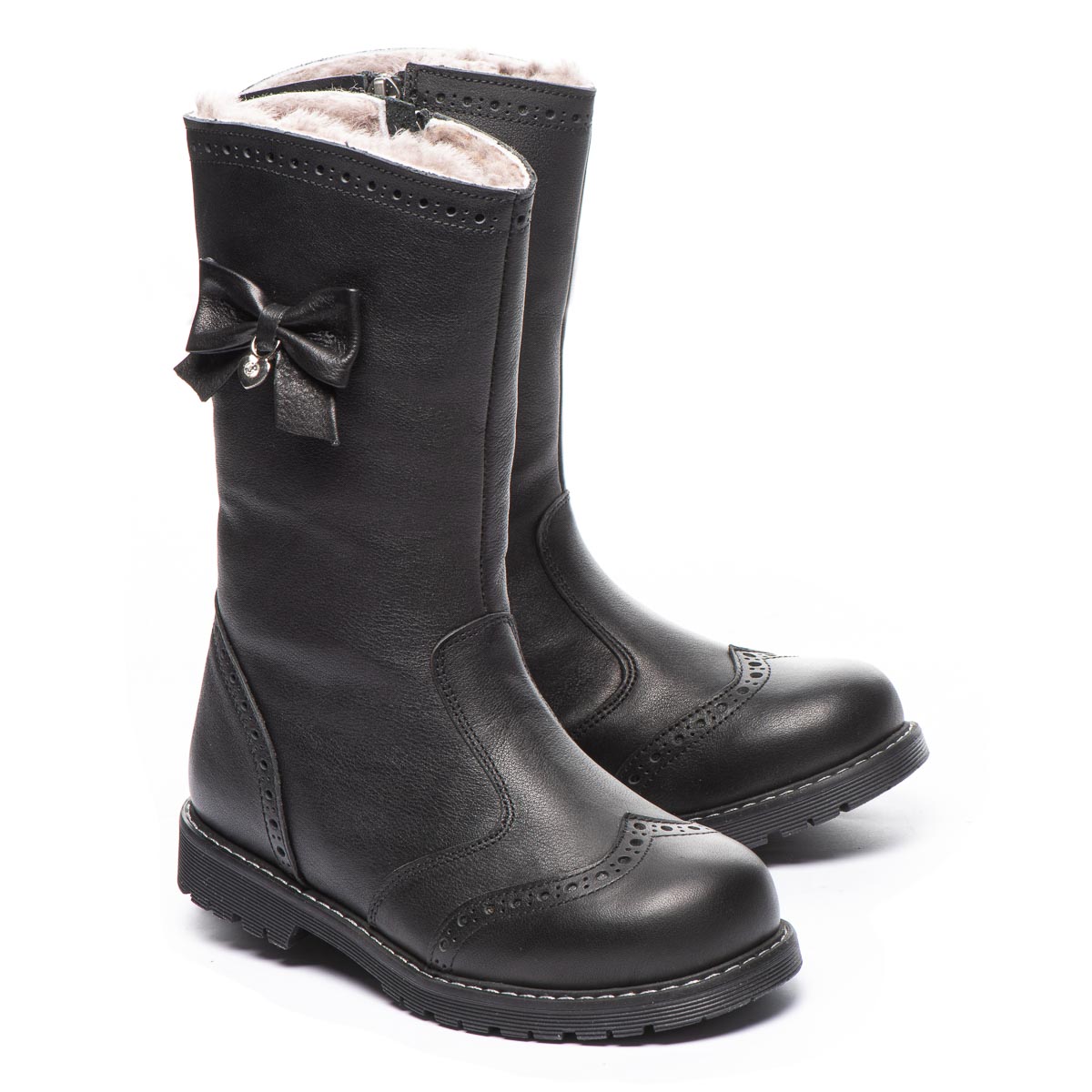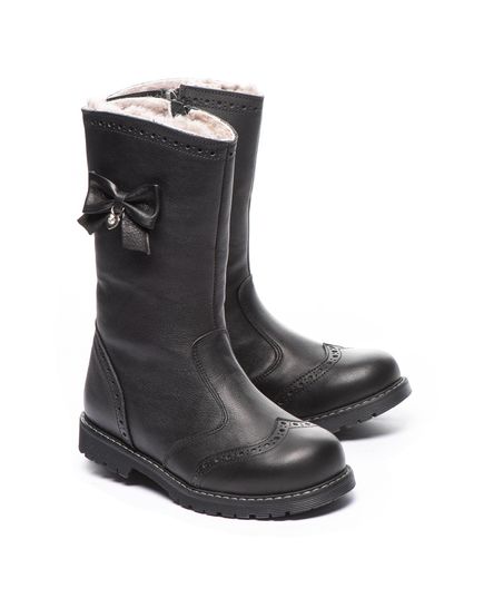 Зимние сапожки для девочек - идеальное сочетание классического стиля, высококачественных материалов и комфорта. Выполнены из натуральной гладкой кожи в насыщенном черном цвете, утепленные натуральным мехом - мягкой цигейкой. Практичная молния обеспечивает легкое обувание, а жесткий задник и супинатор на стельке - дарят оптимальную поддержку и комфорт ножкам. Особое очарование этим сапожкам добавляет милый бантик.